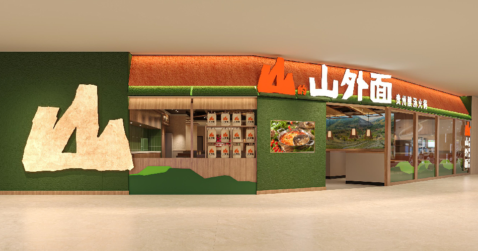 山的山外面是九毛九旗下又一火锅品牌,主打来自贵州山里的好酸汤。来自大山里,走到山外面。以“山里来的酸”作为品牌标语,表达朴实真诚的品牌理念。将山里的好酸汤好食材,质朴真诚的人文属性,带到山外面。